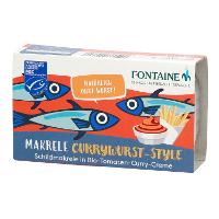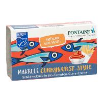 SCHILDMAKRELENFILETS ohne Haut(Trachurus murphyi) 60%, Tomatenmark*(8%), Sonnenblumenöl*,Wasser, Vollrohrzucker*, Curry* (1,7%),Branntweinessig*, Zitronensaft*, Meersalz,Verdickungsmittel: Guarkernmehl*| Energie | Fett | gesättigte Fettsäuren | Kohlenhydrate | Zucker | Eiweiss | Salz |
