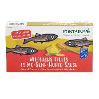 WILDLACHS (60%) (Oncorhynchus spp.), SENF* (13% ) (Wasser,GELBSENFSAAT*, Branntweinessig*, Meersalz,BRAUNSENFSAAT*, Gewürze*, Kräuter*),Wasser, Sonnenblumenöl*, *Rohrohrzucker,Honig* (2%), Branntweinessig*, Meersalz,Verdickungsmittel: Guarkernmehl*, Dill*| Energie | Fett | gesättigte Fettsäuren | Kohlenhydrate | Zucker | Eiweiss | Salz |
