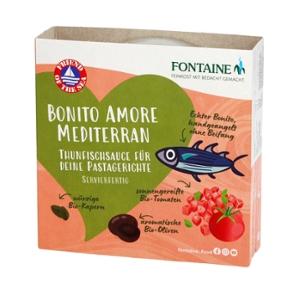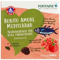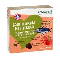 THUNFISCH (Katsuwonus pelamis) (33%)Gemüse*in veränderlichen Gewichtsanteilen(41% - Tomatenstücke*, schwarze Oliven*,Kapern*), Olivenöl* (18,5%), Wasser, Meersalz,Oregano*, Gewürze*, Zitronenschale*, Vollrohrzucker*| Energie | Fett | gesättigte Fettsäuren | Kohlenhydrate | Zucker | Eiweiss | Salz |