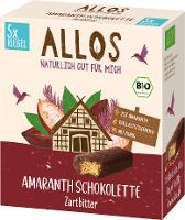 Zartbitterschokolade* (57%) (Kakaomasse*, Rohrohrzucker*, Kakaobutter*, Kakaopulver* stark entölt), Amaranth* gepoppt (25%), Honig* (18%). Kakao in der Schokolade: 70% mindestens.Energie | Fett | gesättigte Fettsäuren | Kohlenhydrate | Zucker | Ballaststoffe | Eiweiss | Salz |