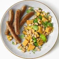 71% Rindfleisch*, Trinkwasser, 13% Sonnenblumenöl*, Meersalz, Gewürze* (Pfeffer*, Ingwer*, Knoblauch*, Koriander*, Kümmel*), Dextrose*, Schafsaitling.| Energie | Fett | gesättigte Fettsäuren | Kohlenhydrate | Zucker | Eiweiss | Salz |