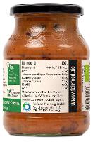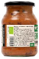Wasser, Kidneybohnen* 14%, Zwiebeln* 5%, CASHEWMUS* 4,9%, SOJA-SCHNETZEL* 3,8%, Tomatenmark* 2-fach konzentriert, Sonnenblumenöl*, Balsamicoessig*, SOJASOßE* 1,2% (Wasser, SOJABOHNEN*, Salz), Salz, Kokosblütenzucker*, Knoblauch*, Paprikapulver*, Zwiebeln geröstet*, Kreuzkümmel*, Chili*.| Energie | Fett | gesättigte Fettsäuren | Kohlenhydrate | Zucker | Eiweiss | Salz |