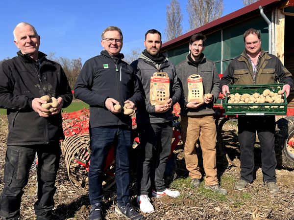 Im Jahr 2018 haben sich drei landwirtschaftliche Bioland-Betriebe zu einer kleinen Erzeugergemeinschaft zusammengeschlossen und vermarkten seitdem gemeinsam ihre Produkte unter dem Namen "Feldfrisch-badisch". Diese Kooperation bietet den großen Vorteil, dass Aufgaben wie Verpackung, Buchhaltung und Logistik zwischen den Betrieben aufgeteilt werden. Jeden Winter treffen sich die drei Betriebe, um gemeinsam das kommende Jahr zu planen. Die Anbauplanung für Kartoffeln wird dabei so gestaltet, dass auf den insgesamt etwa 30 Hektar stets eine kontinuierliche Ernte möglich ist, da verschiedene Kartoffelsorten zu unterschiedlichen Zeiten geerntet werden können. Dadurch sind die Betriebe darauf ausgerichtet, ganzjährig festkochende, vorwiegend festkochende und mehlige Kartoffeln zu vermarkten.